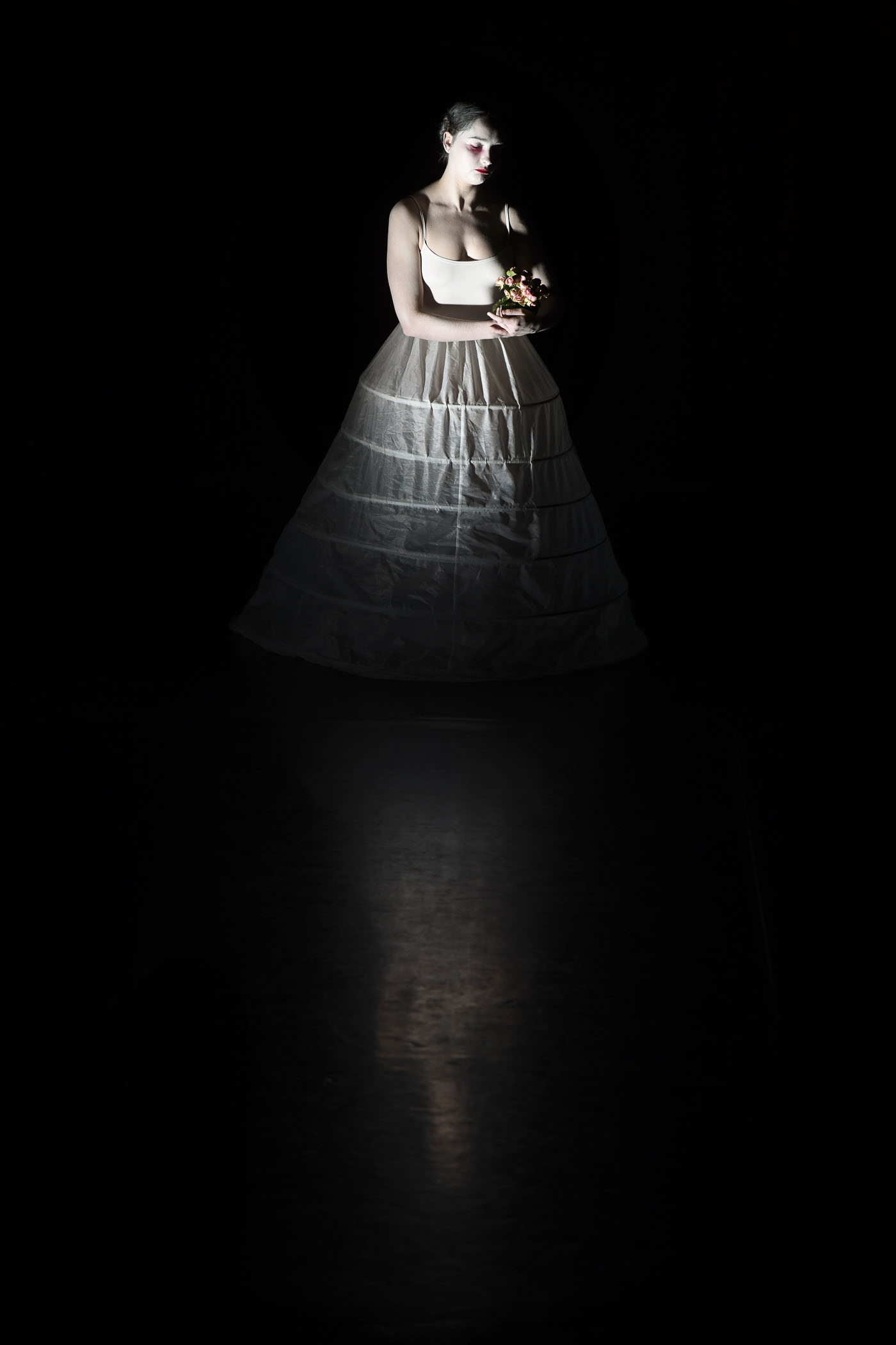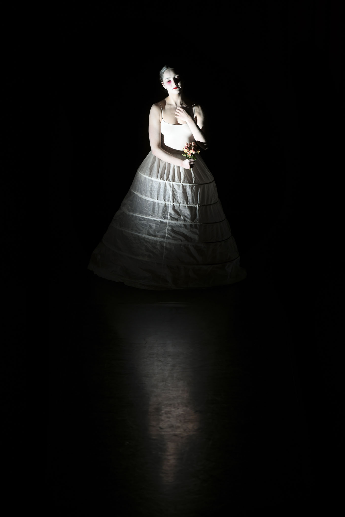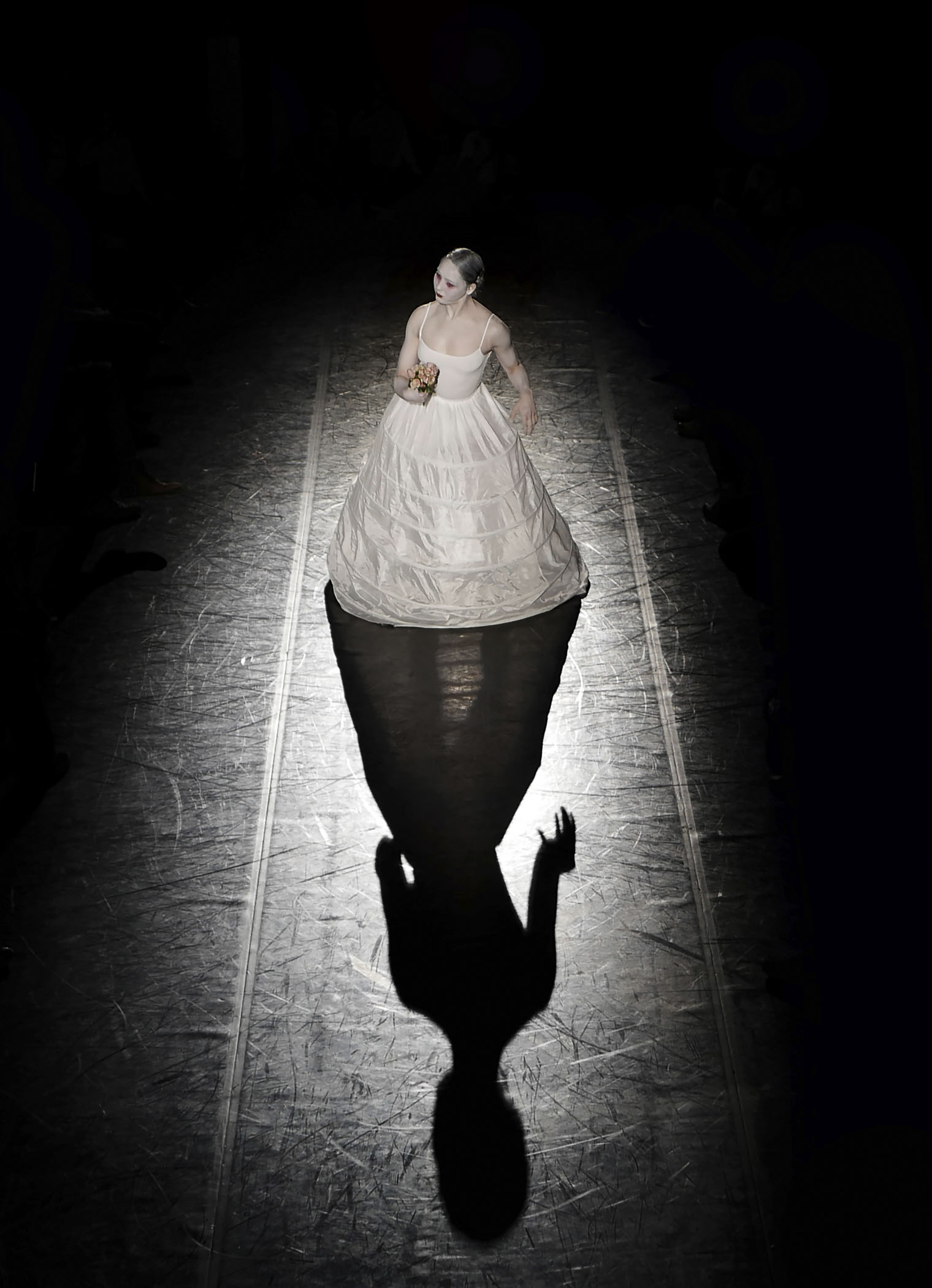 Sous sa robe blanche et son masque d’innocence, L’Épouse est une figure envoûtante, à la fois iconique et étrange. Ce solo raconte l’histoire d’une mariée déchue dont le langage n’est que corps. Elle semble être venue d’un rêve ou d’un cauchemar, elle avance de façon mécanique, perdue, elle tente de communiquer et d’aller vers celles et ceux qui l’observent